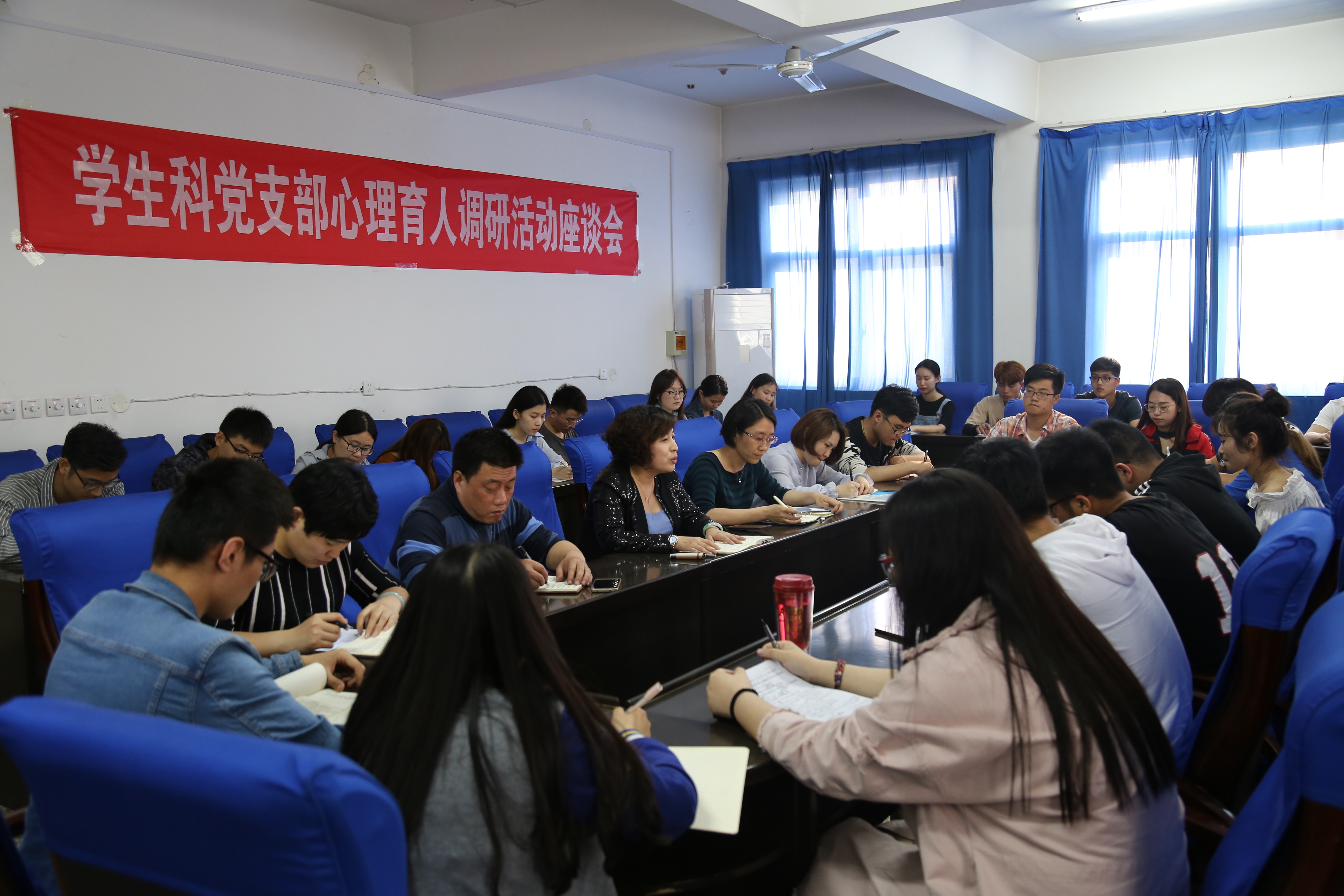 为进一步贯彻落实党的十九大精神及教育部《高校思想政治工作质量提升工程实施纲要》要求,学生科党支部召开全面落实立德树人-心理育人调研活动,组织各年级心理组长及班级心理委员围绕心理健康宣传教育、心理委员成长、5.25“阳光校园”心理文化节、中心相关工作等方面广泛征集学生意见及建议。