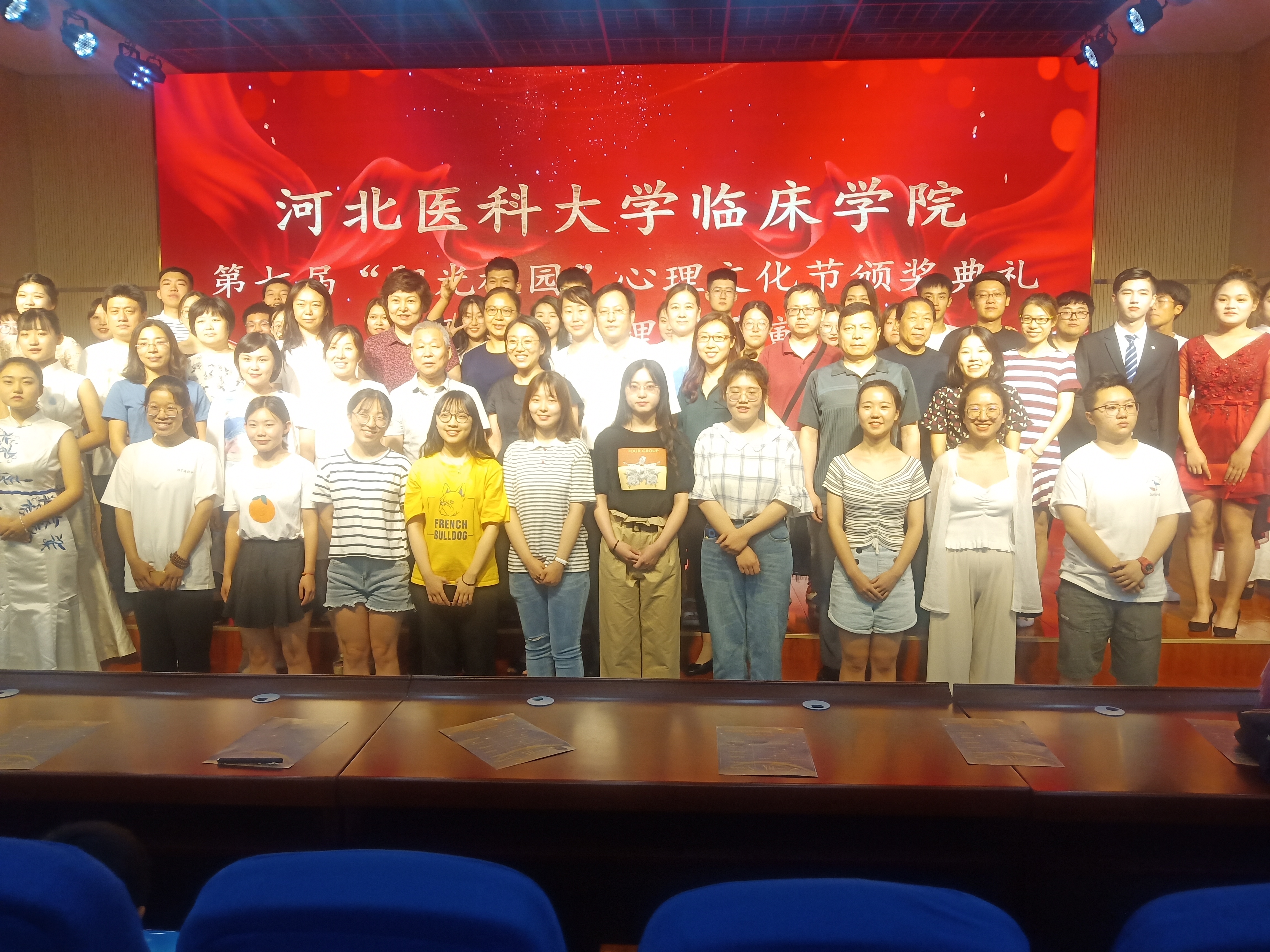 2019年6月13日下午,成人影片 学生科在博学楼九楼报告厅举办了第七届“阳光校园”心理文化节颁奖典礼暨优秀心理剧展演活动,学生科科长杨宏敏老师,学院办公室李丽华、张丽影老师,教务科张荣老师,团委副书记梁晓芸老师以及学生科各老师、各年级辅导员参加了此次颁奖典礼。