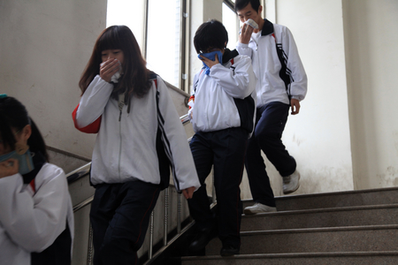 上午10点30分,疏散逃生演练正式开始。保卫科组成疏散演练指挥小组,演练假设博学楼九楼报告厅不慎发生火灾,火势猛烈,浓烟滚滚。演练总指挥一声令下,报告厅老师、学生们纷纷拿起了自备的湿毛巾,捂着鼻子,俯着身子,在辅导员和疏散员的指引下,快速有序地靠墙一侧下楼,逃离危险区域。迅速赶到火灾现场的医务人员,带领学生把虚拟伤员用担架以最快的速度抬离至安全地带进行抢救。仅用不到五分钟的时间,全体师生已在楼下集合完毕,各班辅导员向总指挥汇报清点人数和疏散情况。演练全过程,师生行动迅速,出色地完成了本次演习任务。