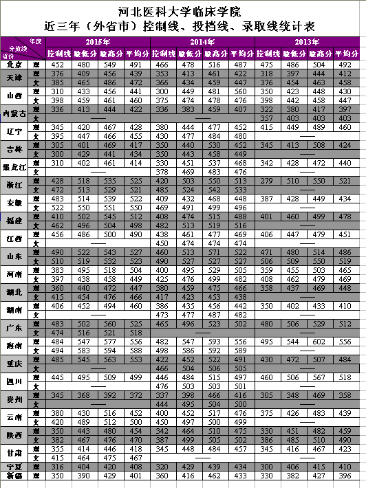 成人影片 2013-2015年(外省市)控制线、投档线、录取线统计表